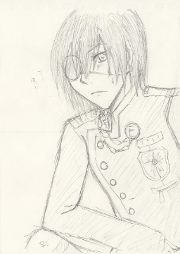 ラビの新団服+眼帯(右目)を、ちょっと思いつきで描いちゃったんですよ。(要はコスプレ状態。)
